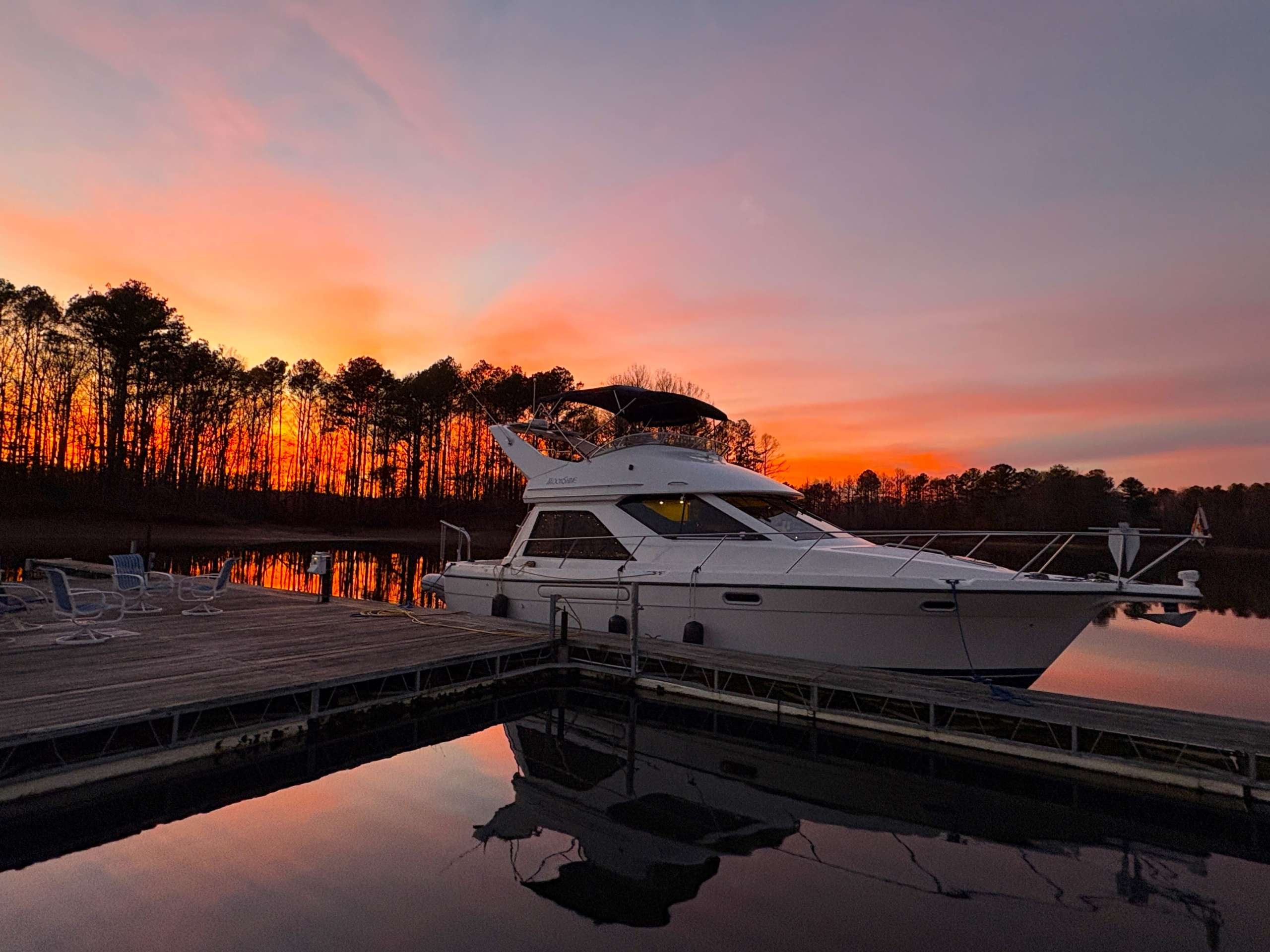 She’s a 1997 Bayliner 3788, one of about 1000 made over almost a decade. Apparently it was a popular design. Powered by two Cummins diesels with a diesel generator.
