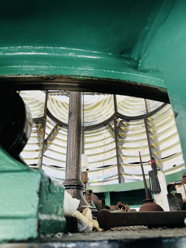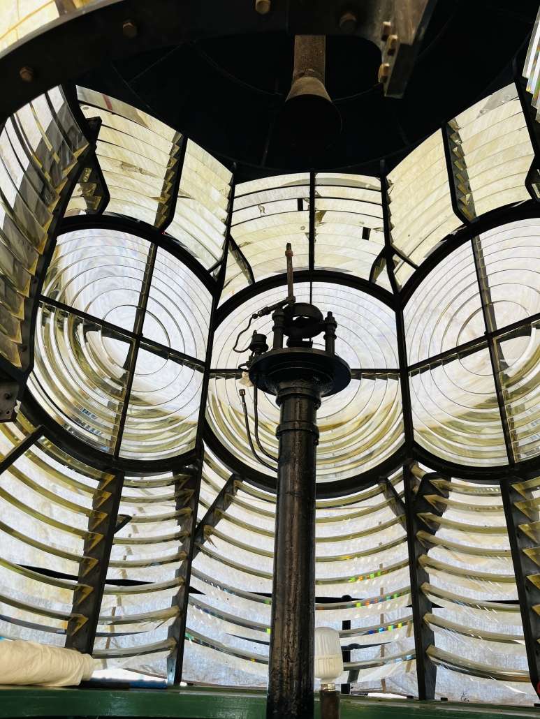 Only one stop light on the whole island! And it’s tiny. The blue house is where we stayed. The lighthouse is the last and only still operational kerosene powered lighthouse in the world. We hitched a ride with the couple in the dingy. Yes frozen pizza is really that price. The streets are that narrow, so golf carts only please. That glass of the Fresnels of the lighthouse is six inches thick. That assembly weighs tons, yet you could turn it by hand as it floats on oil. Some beaches were gorgeous, some you couldn’t walk on without good shoes.