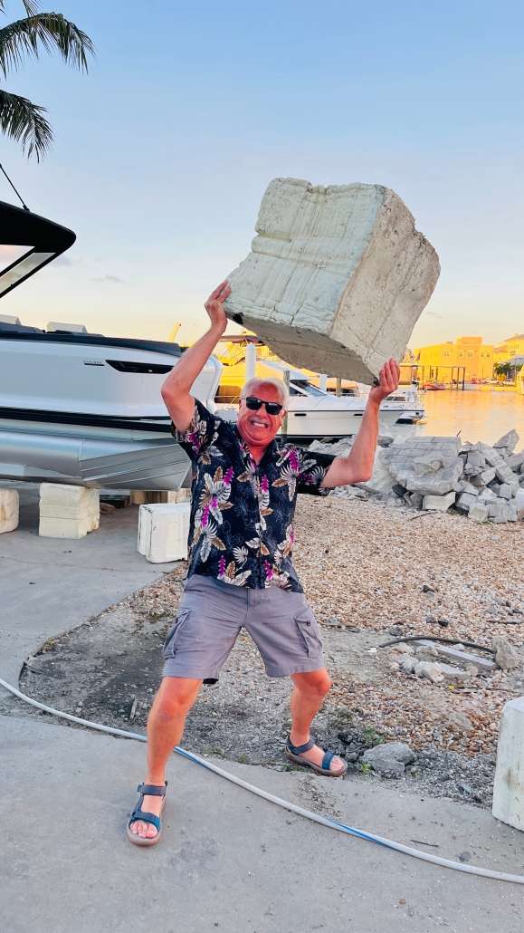 Butch promised to move heaven and Earth for he, he’s doing it one concrete block at a time (see photo). His efforts have been greatly appreciated. And while we’re at it, check out that Scooter video…let’s make it go viral!!! It took him forever to learn his lines! hahahaha