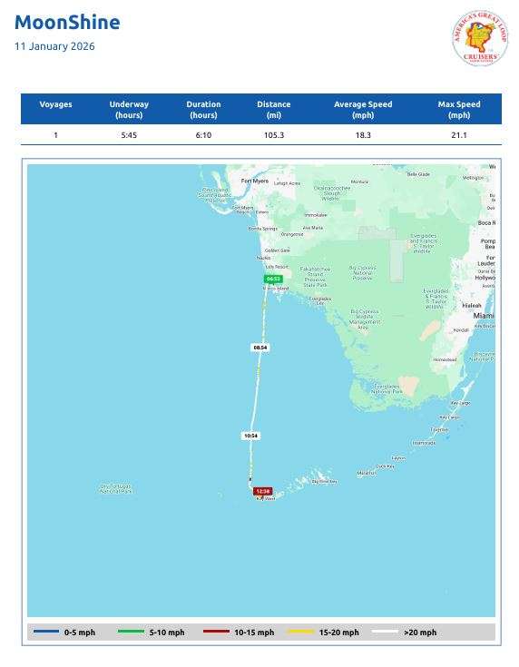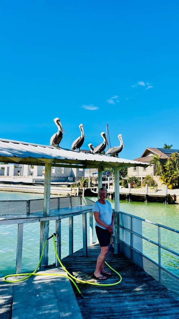 We arrived this afternoon in Key West only one day late for our original reservation! With all that we’ve experienced, I find that amazing. We are now snugged (and I mean that LITERALLY- see video) into our slip. Getting me on and off the boat is a team effort (see same video) but we’ll try to rectify that in the next couple of days. I’ve recommended a zip line, Butch is still debating that one.