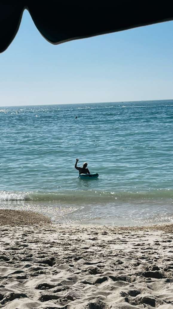 A guy could get used to this. It is a slower pace here, for sure, in many ways. Walking everywhere lets you slow down in such a refreshing way. You get to really see everything as you pass by, unlike when you are in a car and the world zooms by while you look through glass, as if it’s all projected on a screen. Sure, car travel can be enjoyable, but this. This is elemental, earthy, it feels natural like walking on grass or on a warm sandy beach with bare feet. Which we did the other day. The scooters are a lot like walking and at 13 mph are convenient, simple, effective and fun. We used them last night to go to a docktails gathering, where we met new Loopers and reconnected with some folks we had run into before, including Bobcat, Ohm Sweet Ohm, Salty Mitten, Enchanted Circle, Roam, and Summer Breeze.