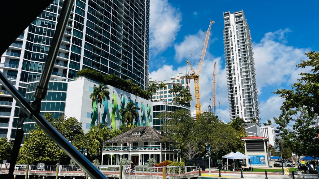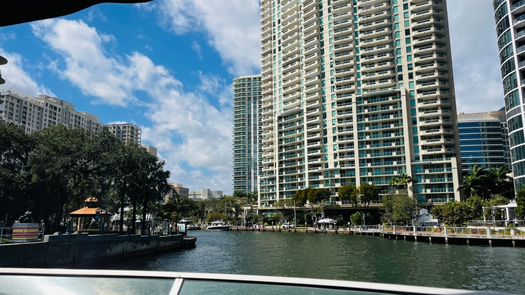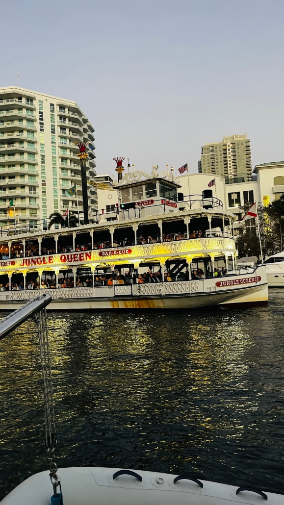 I can’t even begin to describe the homes and yachts, so here’s a few pictures. Coming up the New River in Ft Lauderdale is an experience! You wind through narrow channels, with mega yachts, tour boats, fishing boats, and everything else along side. You’re trying to look at the traffic, the homes, the boats and the skyscrapers at the same time. It’s wild, and not to be missed if you come through Lauderdale by boat. (Cooley’s Landing is probably the only affordable marina in the area.) One thing that stands out is the dramatic difference a few days can make. We were anchored out in the Keys in splendid, beautiful, quiet and isolated sun-drenched anchorages just a few days ago, today we are right in the middle of one of the most densely populated cities in the country. Wowzer.