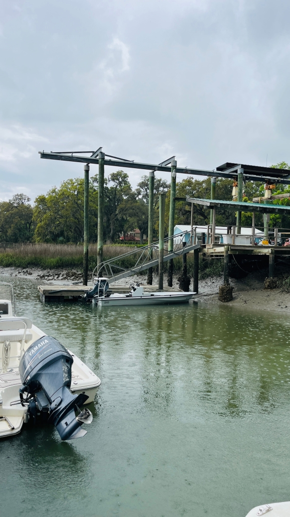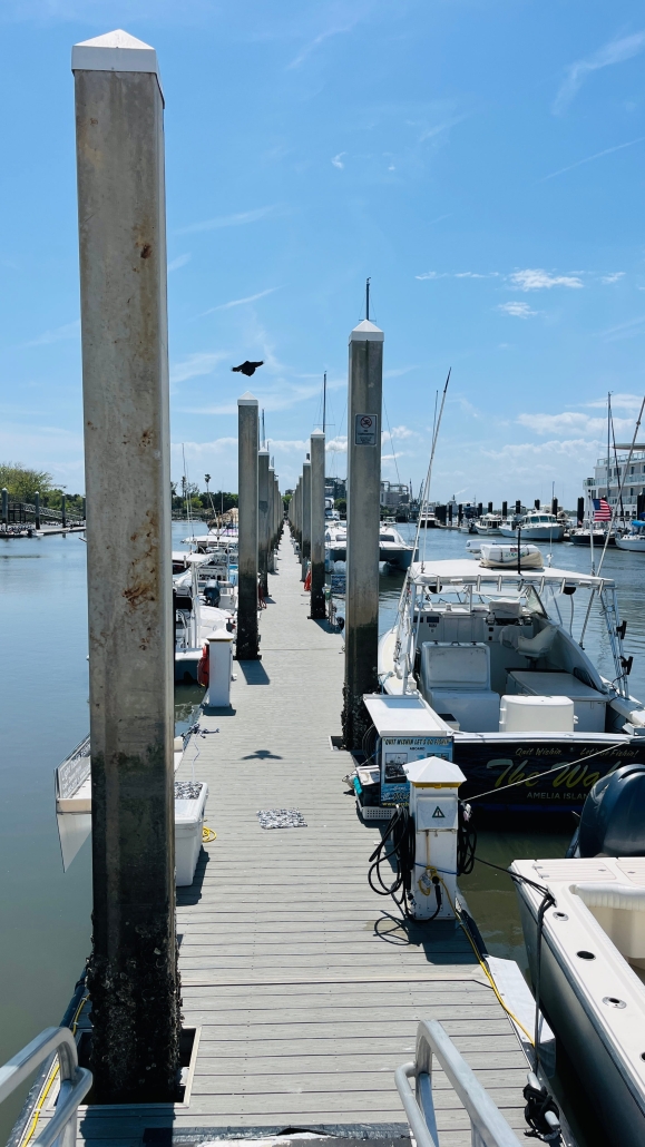 At Fernandina Beach, our boat was the last one out at the end of this long long dock. Then we came to Charleston, home of the mega-dock and discovered what a long dock really looks like. More on that in a bit.
