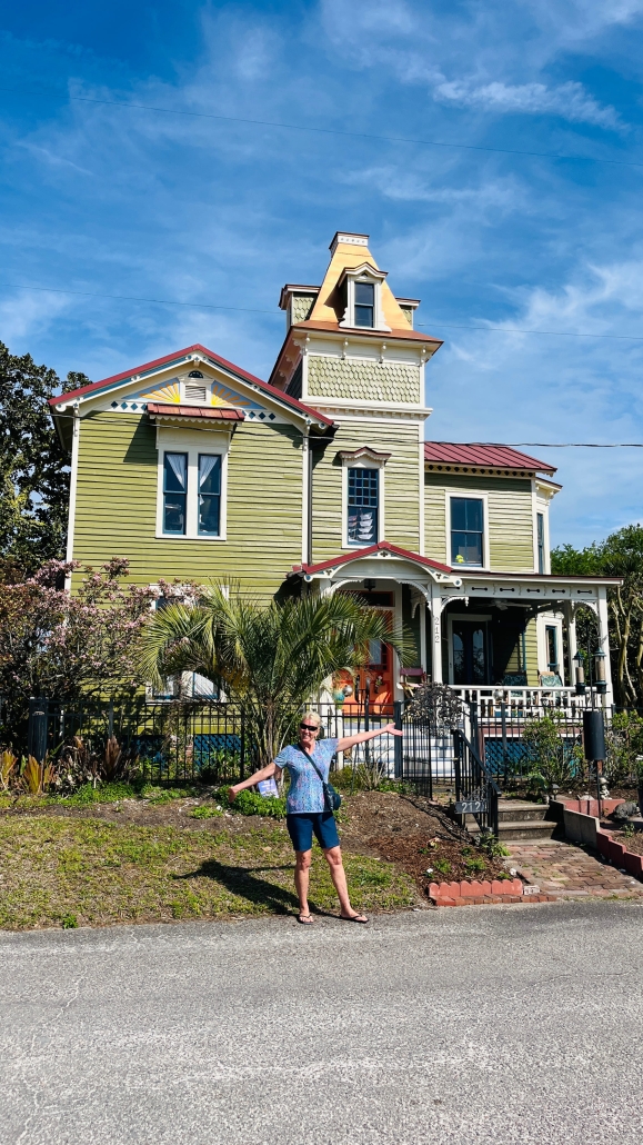 We took a boat tour, which seems incongruous since we’re living on a boat, but we really enjoy the tour guides narration. We’ve done tours at several stops, including Charleston. The history and stories they tell are always fascinating. (Like, did you know that Patty Hearst lives in Charleston?) Cheryl is in front of Pippi Longstocking’s house.