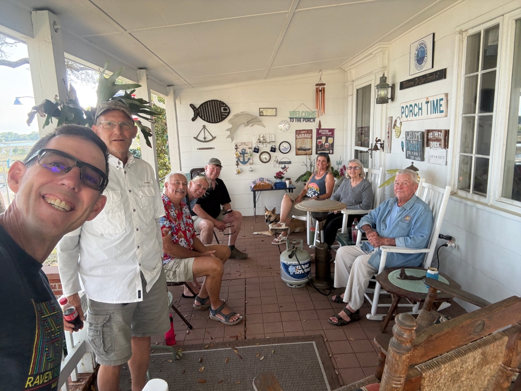 One of the highlights of this section of the trip was Porch Time with Robert and Kay Creech in Southport. If you are a Looper, you know who I’m talking about, if not, Robert and Kay are icons in the Looper world, Gold Loopers, hosting Porch Time evenings with whichever Loopers happen to be in town that day, providing a shady spot to sit and hours of great conversation and useful information about Southport and the Loop. We were there for two great evenings along with YooperToo, Round 4, You and Me, Caballito de Mar, Wade-ing Around, and Barefoot Getaway. So happy we made it!