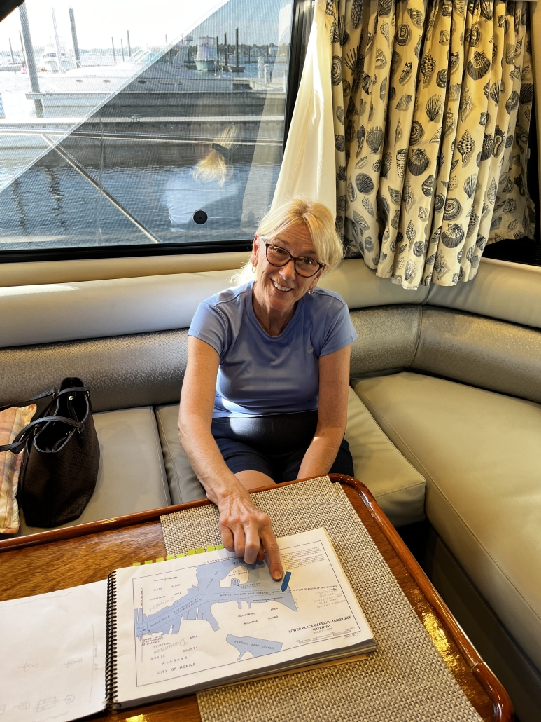 Once we got underway, I noticed the boat wasn’t as fast as before. The props were scraped clean and powerwashed, but they weren’t polished like they used to be. So our top end was only 19.5 MPH. But at least we were moving! We cut across Mobile Bay using some waypoints we’d gotten from another boater. Over and over again on the trip we got invaluable help and tips from people we never met, some of them were on boat forums and some were on the AGLCA site. Mobile Bay, however, is just not much to look at. Refineries all along the west coast, and Mobile itself presents the industrial side to the river, so it’s not much to look at either. We blasted across it, some 30 miles, and fueled up at a marina just on the south edge of town. Marinas are an entire chapter and I might as well get that off my chest.