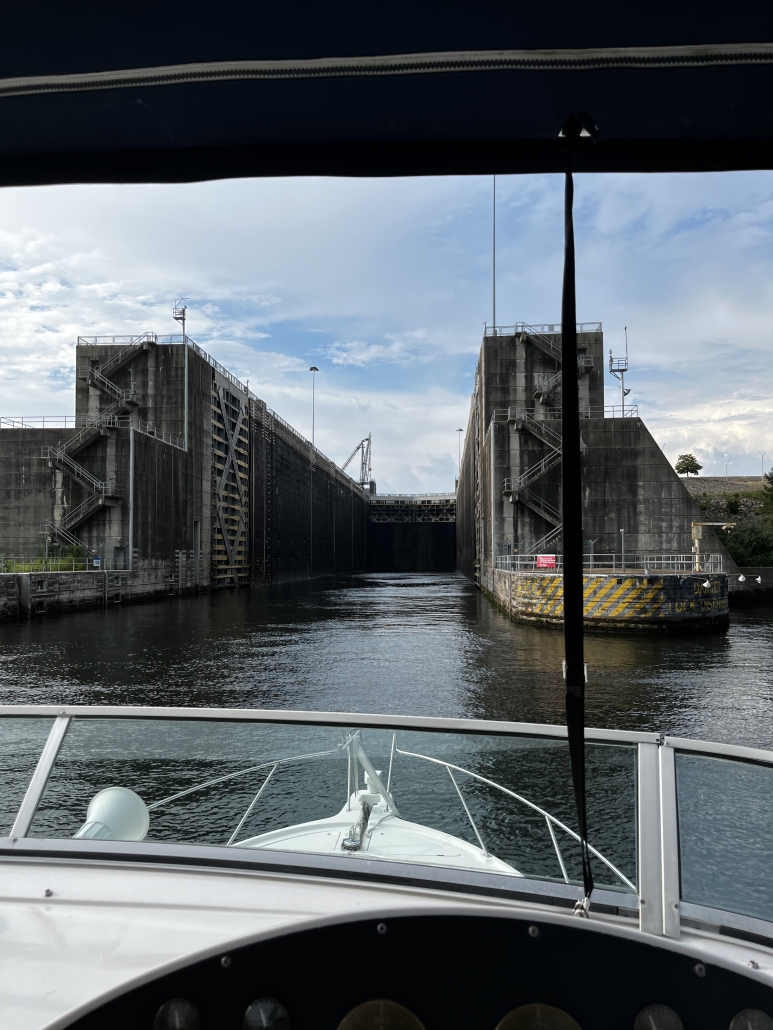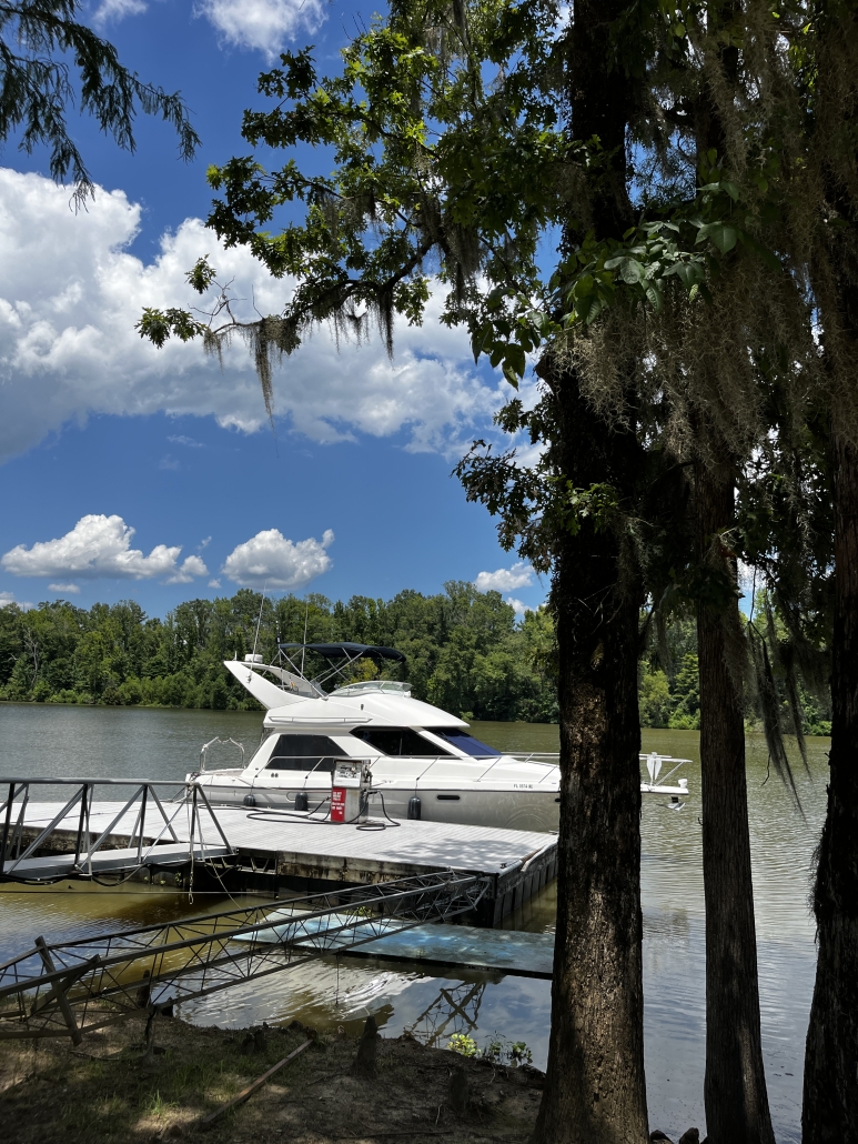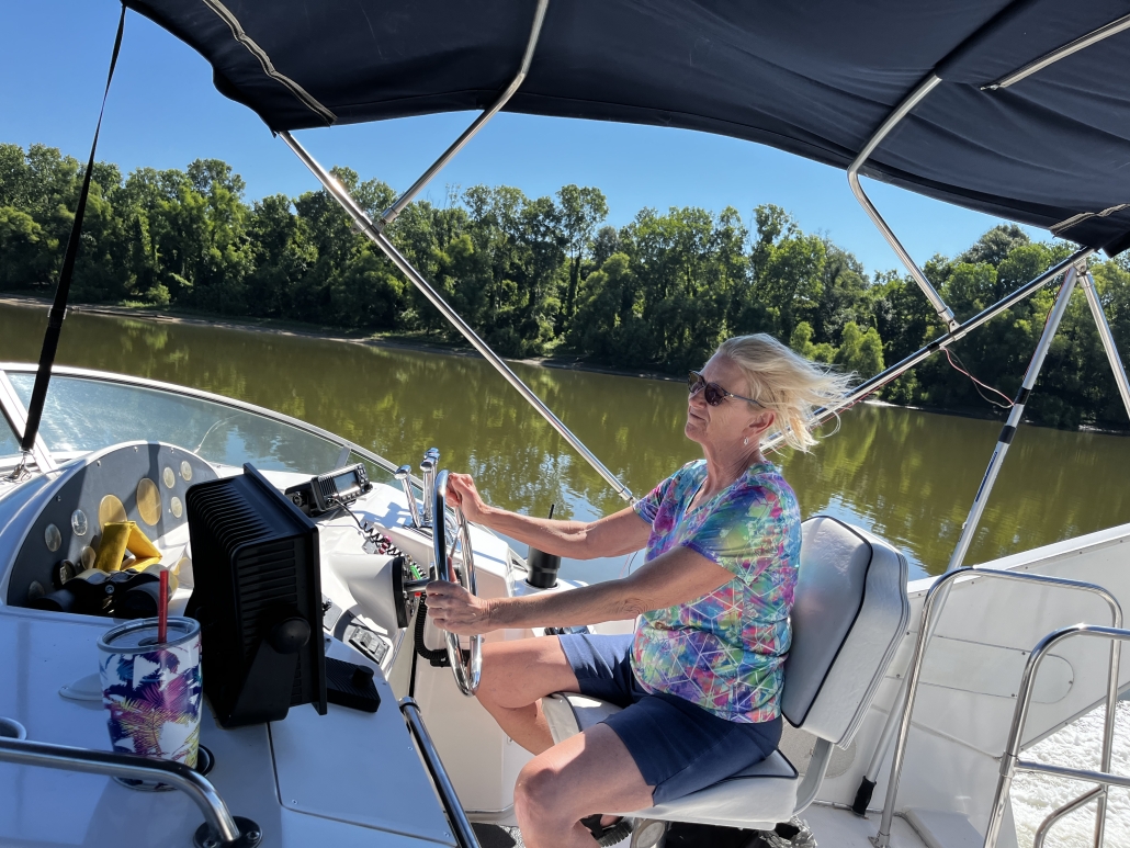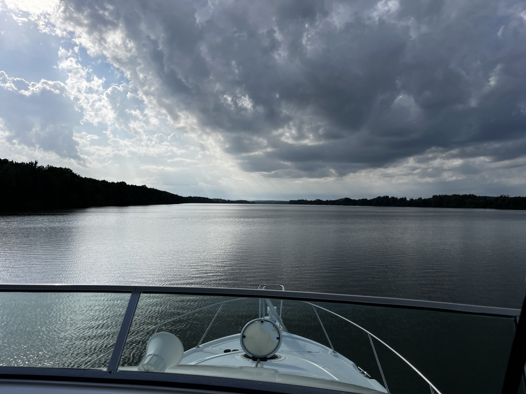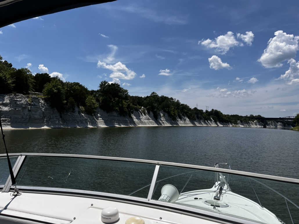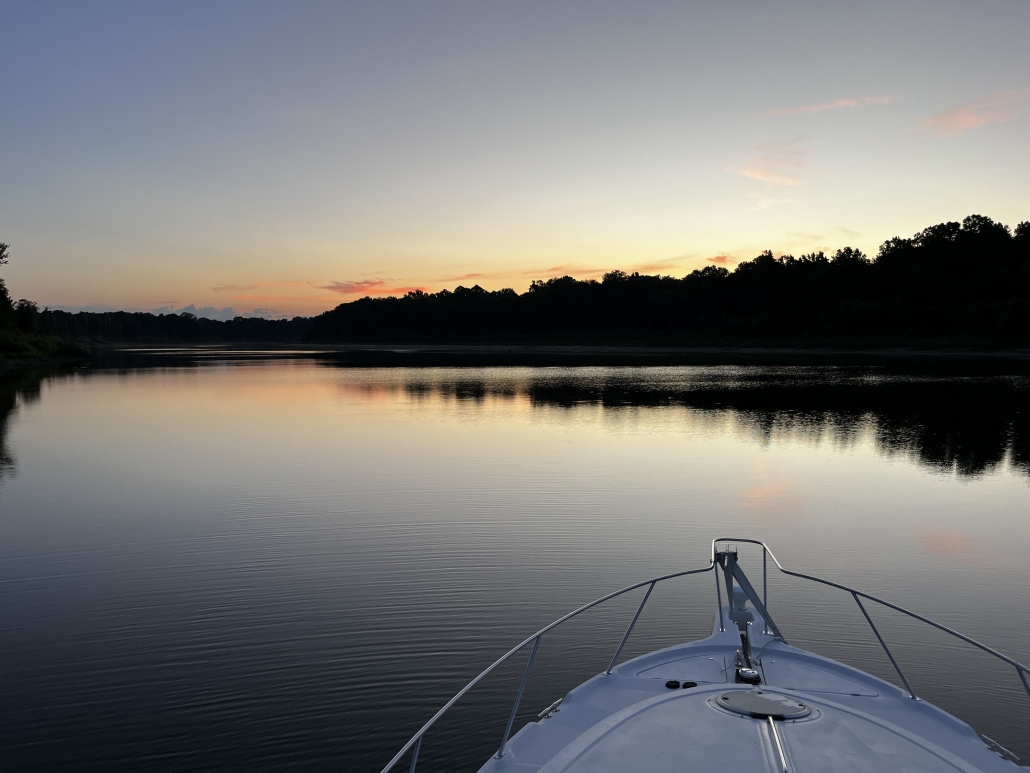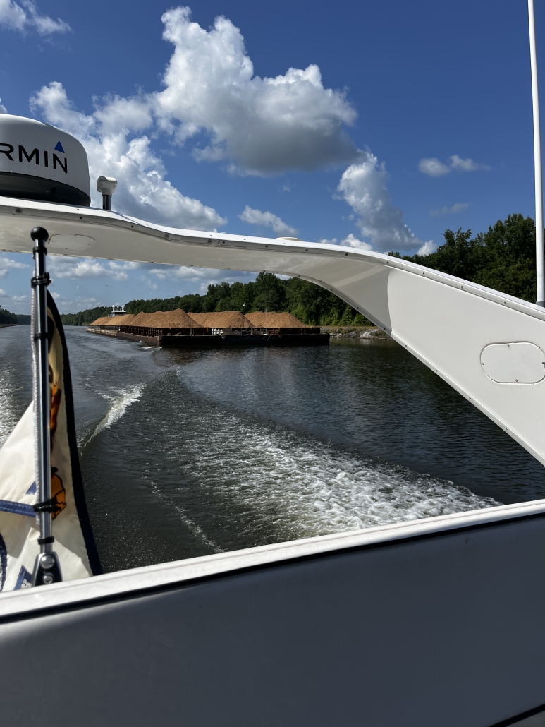 July 2024. 890 miles. 20 locks. By boat. Seven days! That is hauling a**, no matter how you look at it. I knew I wanted to try owning a fast boat this time, but wow. That’s an average of 127 miles a day. MoonShine moves. When I did this trip in the sailboat it took three weeks. We actually were gone 12 days, but 5 of those were non-moving days; either we were prepping the boat, waiting to get the props cleaned, or taking a day off to sit in a marina with the A/C on. Was it the same experience at speed as it was in a sailboat? Pretty much, yes. That heady feeling of watching the wake recede behind you, (a metaphor for life; the wake, like life, is powerful and meaningful when up close but as it moves away into our past, that meaning fades into the mists of forgetfulness, just as the boat’s wake melts back into the water) never loses its fascination. In the other direction, again, the heady feeling of looking just over the horizon or around the next bend in the river is endlessly exhilarating. And just like life, you can anticipate all you want but you just never know what the next few miles will bring.