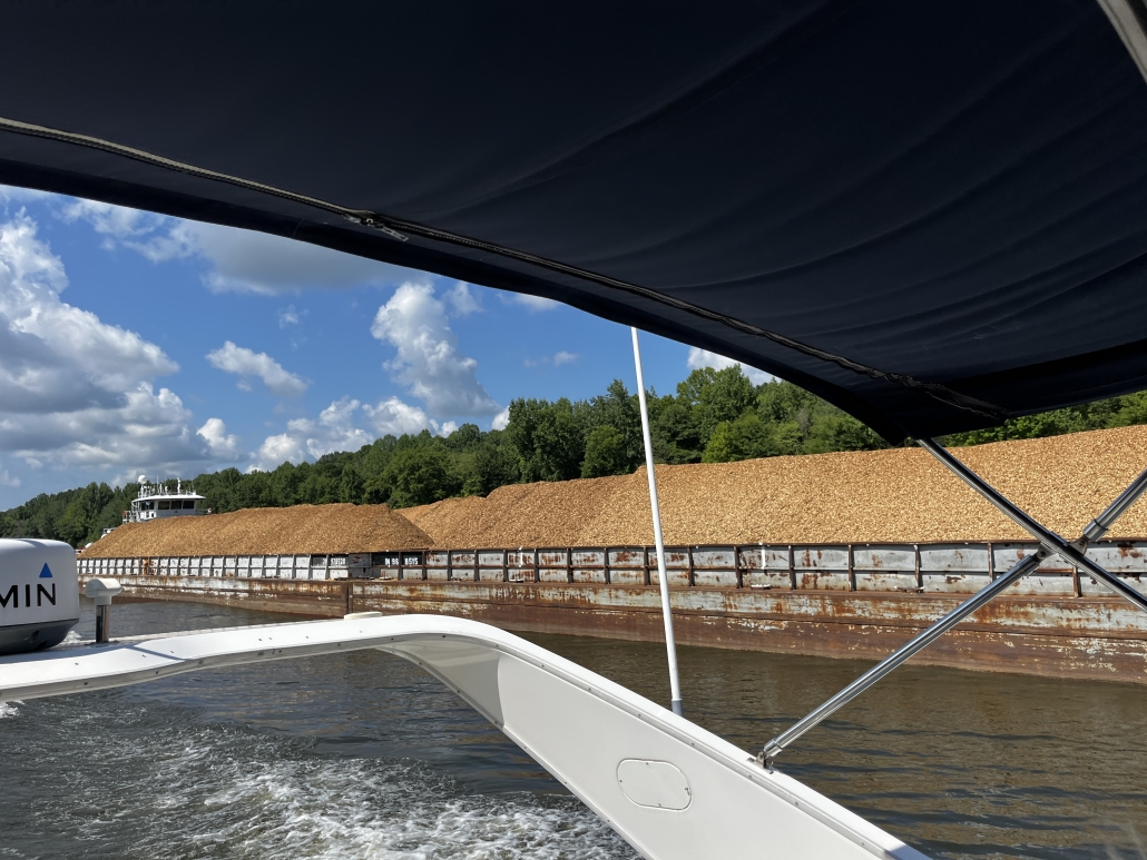 And tows! This guy was pushing three wide and three long. Wood chips. I asked him what they weighed. Eleven thousand tons. Per barge. Ninety-nine thousand tons! This is why you do not get in front of these guys.