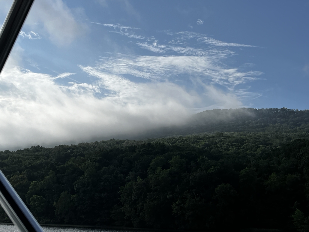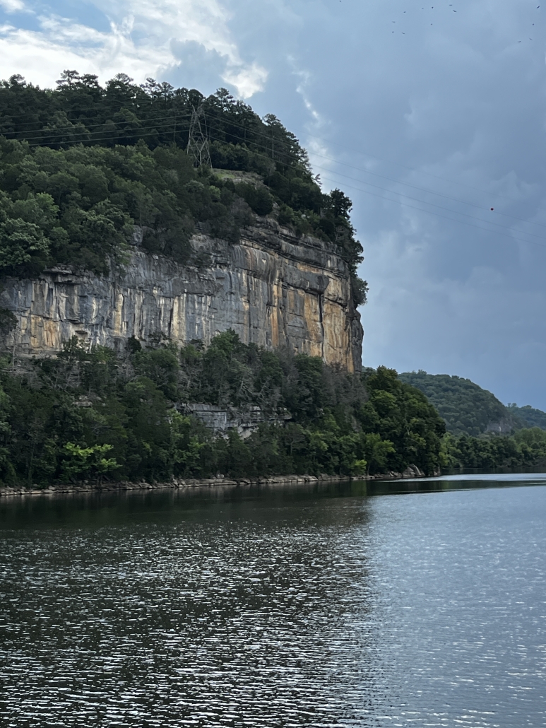One thing I noticed was that when we turned off the TennTom Waterway and onto the Tennessee river, wow what a difference! The TennTom and the TomBigBee are narrow rivers with few places to pull over, not much scenery except trees, and really, just a water highway. But the Tennessee! It’s five miles wide in places, with anchorages everywhere and gorgeous scenery. Foothills in the distance, the Chattanooga gorge, clouds hanging on the mountain tops, and finally the Smokies come into view. It is an entirely different experience. The East-West Tennessee is beautiful, the North-South section of rivers, not so much. Those rivers feel more like just a way to get to Florida now.