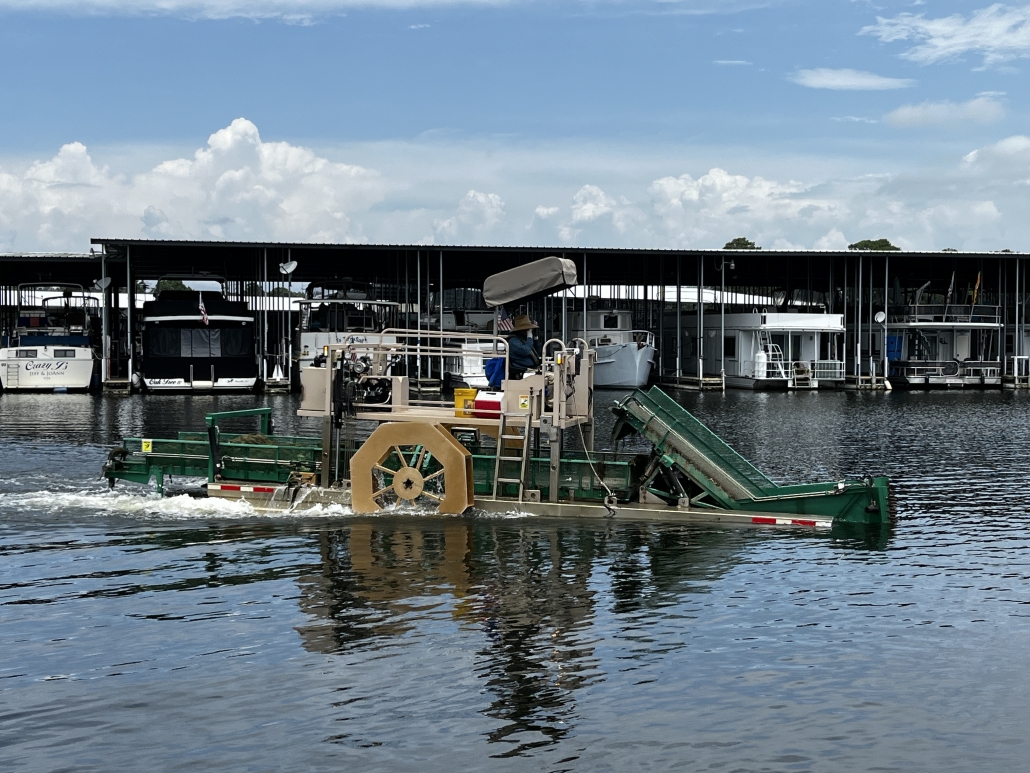 Another lock, and a home-made machine for scooping up the palmlilys that cover the waterways in Alabama. If you didn’t keep up with them they would soon choke off the smaller routes in to marinas.