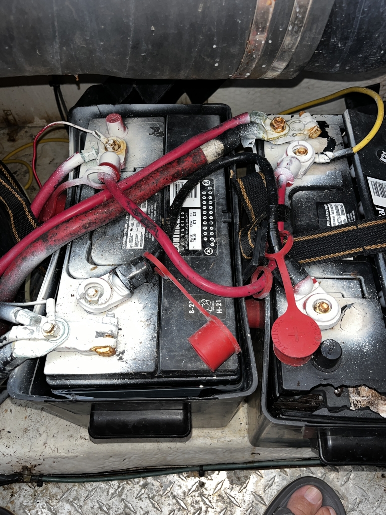 Ok, one boat photo. Turns out we lost a house battery, (look at the bottom of the right hand battery) so I’ve got all this mess pulled out, cleaned up, and this week three new golfcart batteries go in with new battery trays and holddowns. A bit of work and a bit of a mess!