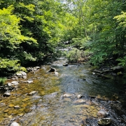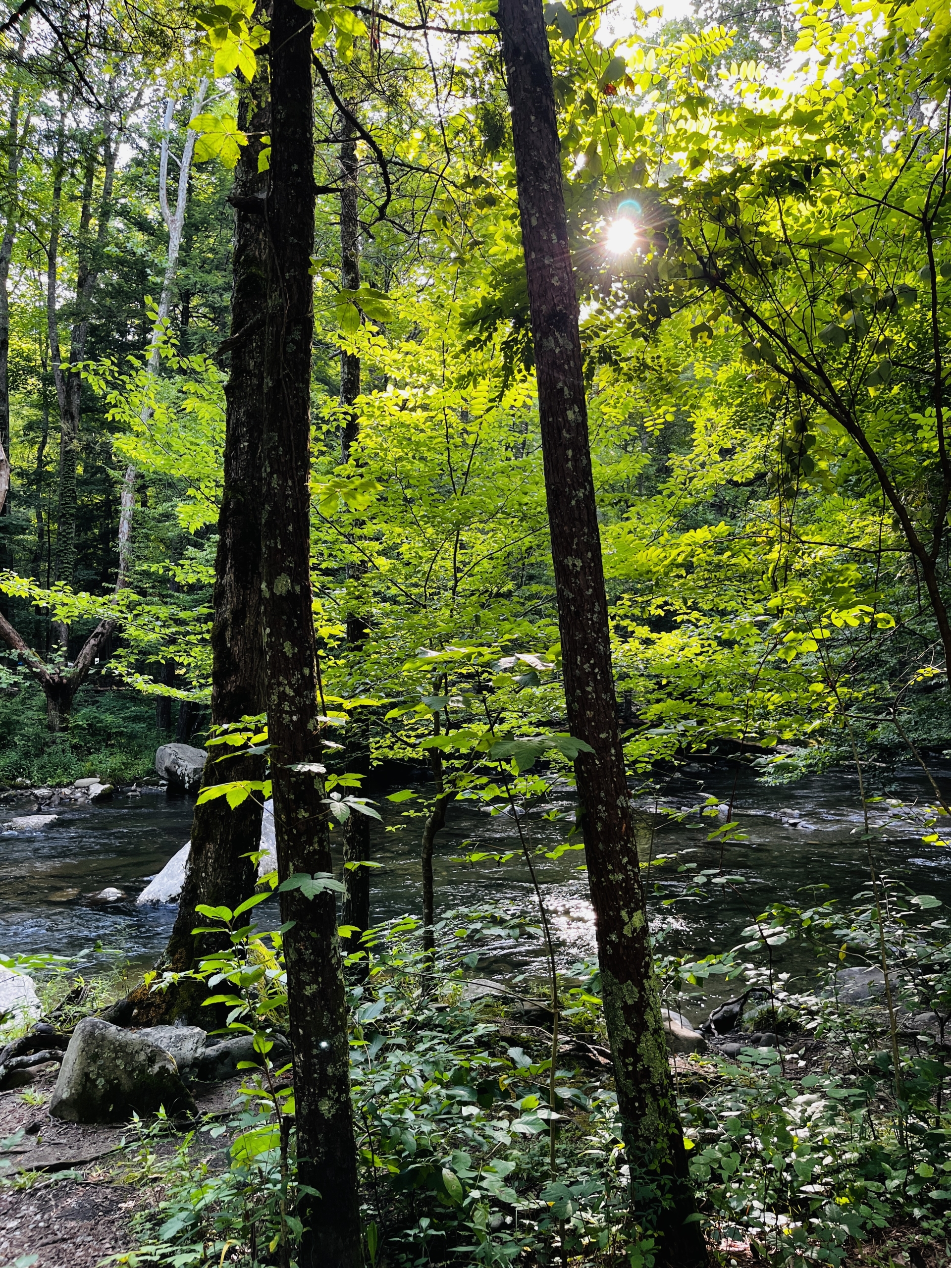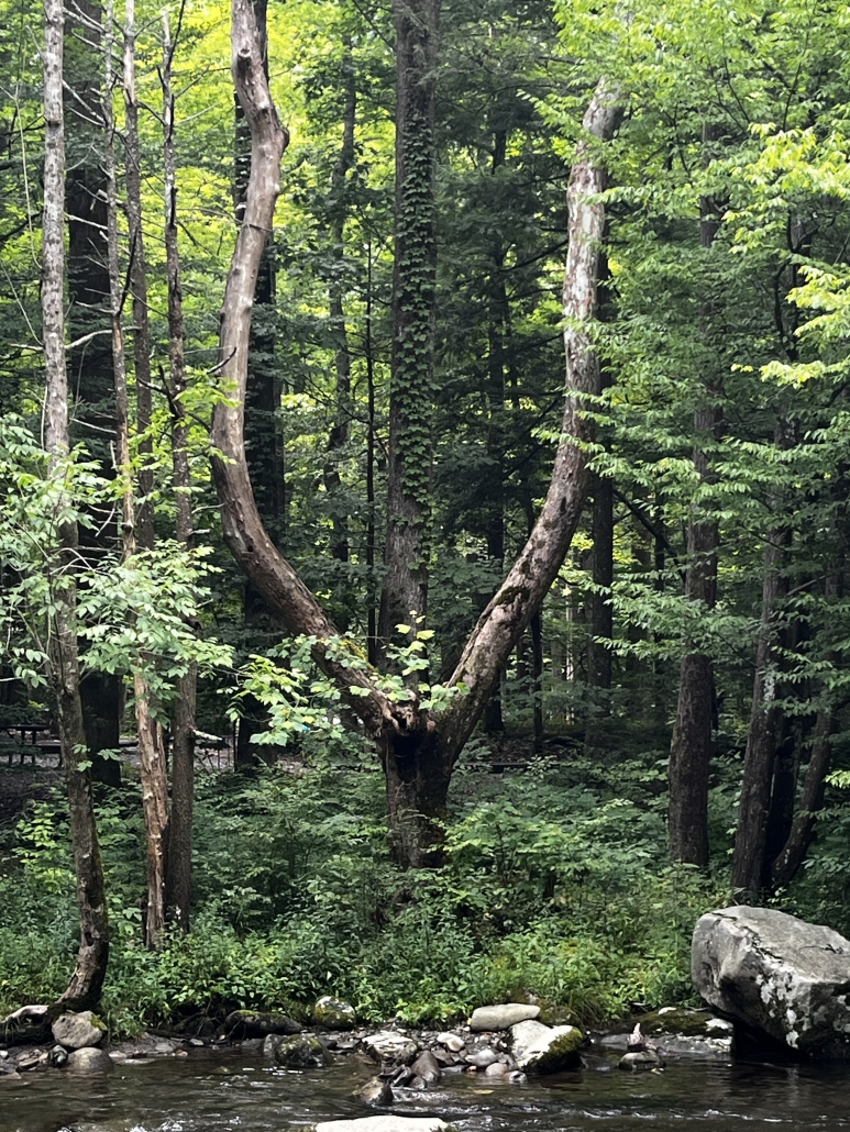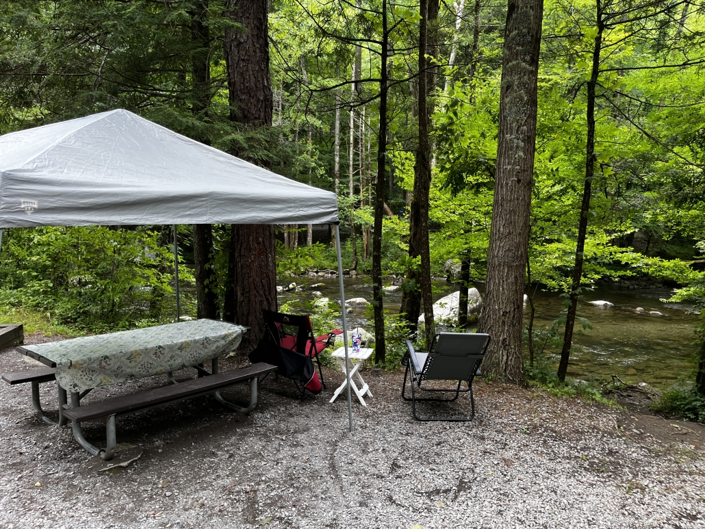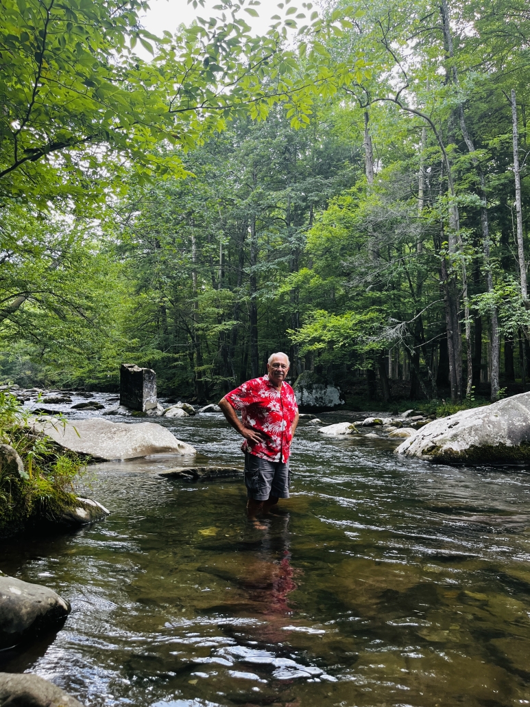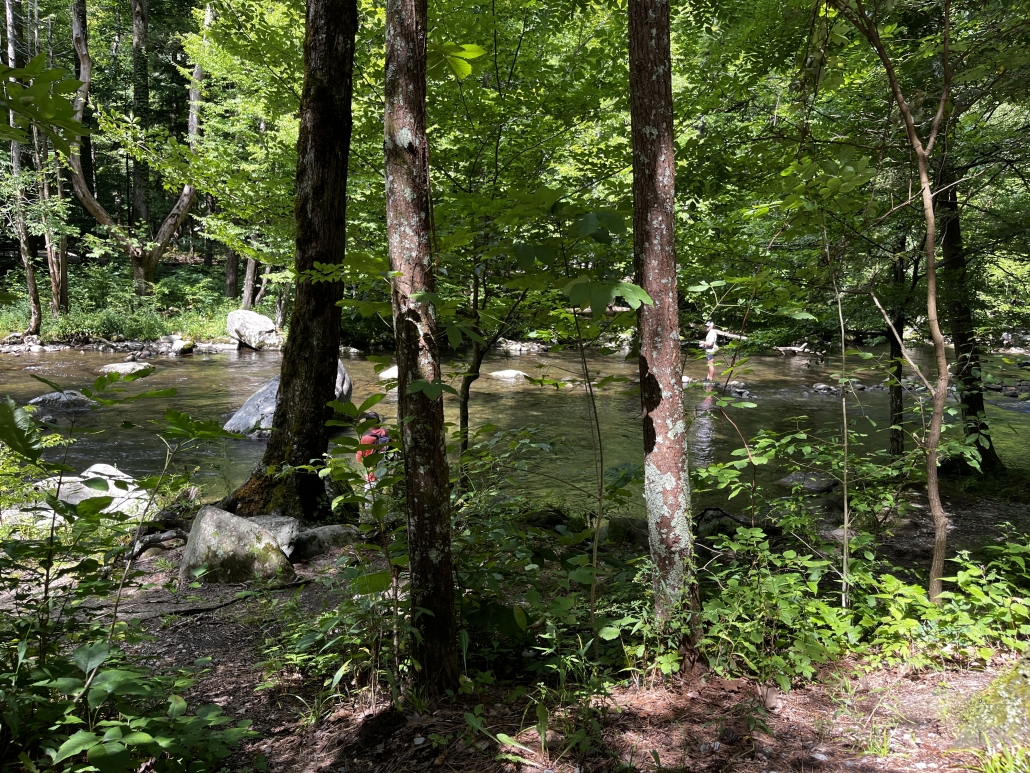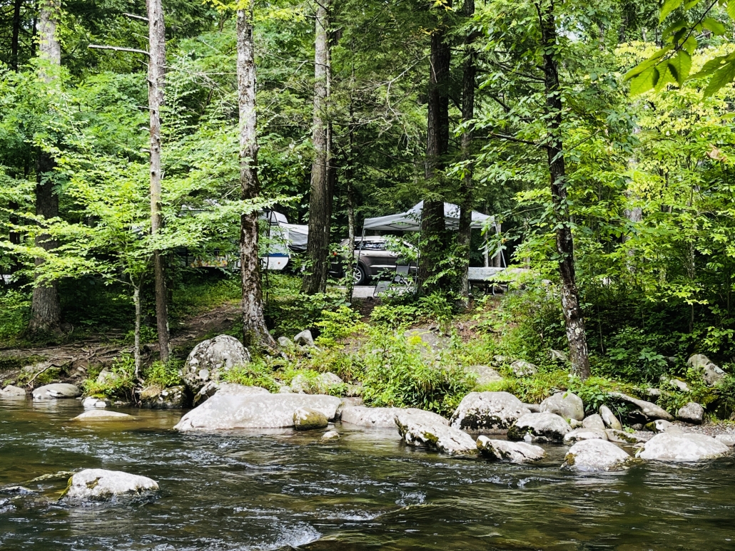 No sailing this time, the boat hasn’t moved since our last post. We’ve been cleaning and tinkering with it but haven’t taken her out yet. We did go camping in Cheryl’s new trailer, and since I don’t post much on FB or any of the other SM places, here we go. We went to Elkmont campground, one of the most popular in the Smokies and for good reason. The Little River runs through it, you can camp so close you can listen to the river all night long and the cool water air-conditions the bottoms so even in August it’s a great place to camp. There’s Daisy Town, an abandoned mining town, to explore, a few lost cabins still standing in the woods you can hike to, a gorgeous walkway beside the river, waterfalls, and of course the synchronous fireflies in May/June. Elkmont has a fascinating history. Back in the early 1900’s it was a thriving logging town with a hospital, post office, general store, a runway, blacksmith shop and many homes. The homes were often “setoff homes”, which was a small house the logging company could pick up and set off anywhere they needed a work crew to live. Some of those setoff homes make up Daisy Town today. One of the more flamboyant characters of the day hauled a WWI Jenny airplane up there and assembled it, then talked a buddy into trying to take off. He hit a big rock, which is still there, spun out and that was the end of that. A small boy picked up a piece of the broken propeller and someone took his photo which I found in a history book. In another one of the history books I read there is a photo him in his 80’s, standing by the rock, holding that same piece of propeller. When the logging dried up in about 1930 the railroad pulled up the rails as they left and the town died. Later the government made it into the Smoky Mountains National Park and bought out the few remaining households. Today there a few buildings restored and used for weddings, etc. There are still remains of old bridges in the river and in the woods as you hike you can spot old homesteads. Cool place to explore. No electricity or water though, so it’s really camping, not glamping. Cheryl’s trailer has all the amenities including a fridge so we were doing fine. We had a great visit with Cheryl’s friends Norma and Ira who were in Gatlinburg on vacation, was nice to have an afternoon deep in conversation. Spent most of the time sitting in a chair by the river reading a cheesy thriller about the Yellowstone Park supervolcano going off; the book had mass destruction, falling buildings, planes crashing, tidal waves, people in frantic situations, lava flowing, tons of ash in the sky, government collapse, and, well you know, it was a cheesy thriller. Loved it. I did have this thought: How many of my readers here have spent 3 or 4 days without electricity, internet, a cell phone, and TV lately? A few of them I know, but on average, not too many Americans spend any time at all without all that paraphernalia close at hand, much less days at a time. It does reset your mind a bit, not just the relaxation, but the enforced time spent with your own thoughts and the beauty of nature. You come back with, if nothing else, a fresh appreciation for how stupid the media is. A TV commercial of any kind looks pretty ridiculous after a few days without. So without further ado here’s a few photos, in no particular order, of our weekend.