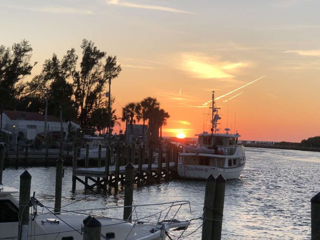 We set sail that next day. Our first port was Venice – my old stomping grounds. Diane and her niece were our first official dinner guests as we dined on penne lasagna and watched the sunset over the Gulf from our flybridge (boat talk- 1 point!).