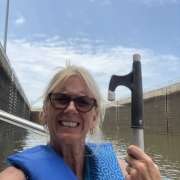 I mentioned my romantic Italian side. When we first discussed buying a boat and setting out on this adventure, I was all in. I’d spent a great deal of time around water and had watched with envy those beautiful white yachts sailing past my RV as it lay dormant in its campsite. I envisioned lifelong friends sharing delicious food, laughter, and glasses of chilled wine in the glow of the moon at the end of a relaxing day on the water. So, I packed for that. I packed cute outfits and sparkly sandals to wear to the quaint restaurants at the state of the art marinas we’d encounter along the way. I packed two new bathing suits and a new lace cover up for lounging on the front of the boat in the late afternoon sun. I packed a hairdryer, a curling iron, nail polish, make up, and a variety of grooming products to look my best at all times. I packed a hula hoop that I use thirty minutes each day at home. I filled our freezer with food and packed a selection of cheeses, crackers and wine for those romantic evenings in the MoonShine. Silly me! One marina did have a grill but the lady working it was out to lunch when we arrived. Not a single restaurant. The sun and heat were relentless. At every turn, I’d run from one side of the boat to the other in search of a smidgen of shade. I wish I would’ve received that vocabulary list with “boat hair” on it! Keeping my bangs from sandblasting my face was all the hair care I dreamed of. By the end of each day what energy I could muster was rationed to brushing my teeth. Most of the food is now in my freezer at home, it was too hot to eat anything but watermelon. For the longest time, we couldn’t find the alcohol which was probably a good thing. Had we ingested it, we probably would’ve spontaneously combusted from the heat. But I wore lipstick every day, darn it. I refused to be uncivilized.